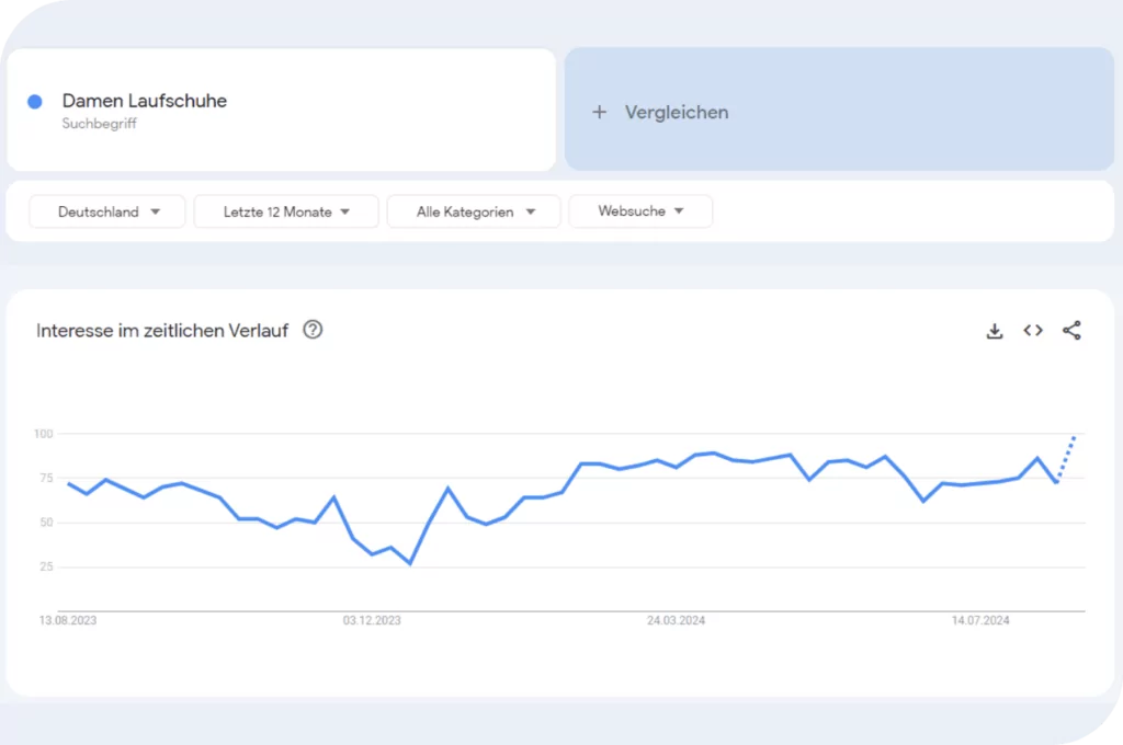 Google Trends ist ein weiteres tool, welches keine spezifischen Keyword-Vorschläge liefert, jedoch aber zeigt, wie sich das Interesse an bestimmten Keywords im Zeitverlauf entwickelt hat.